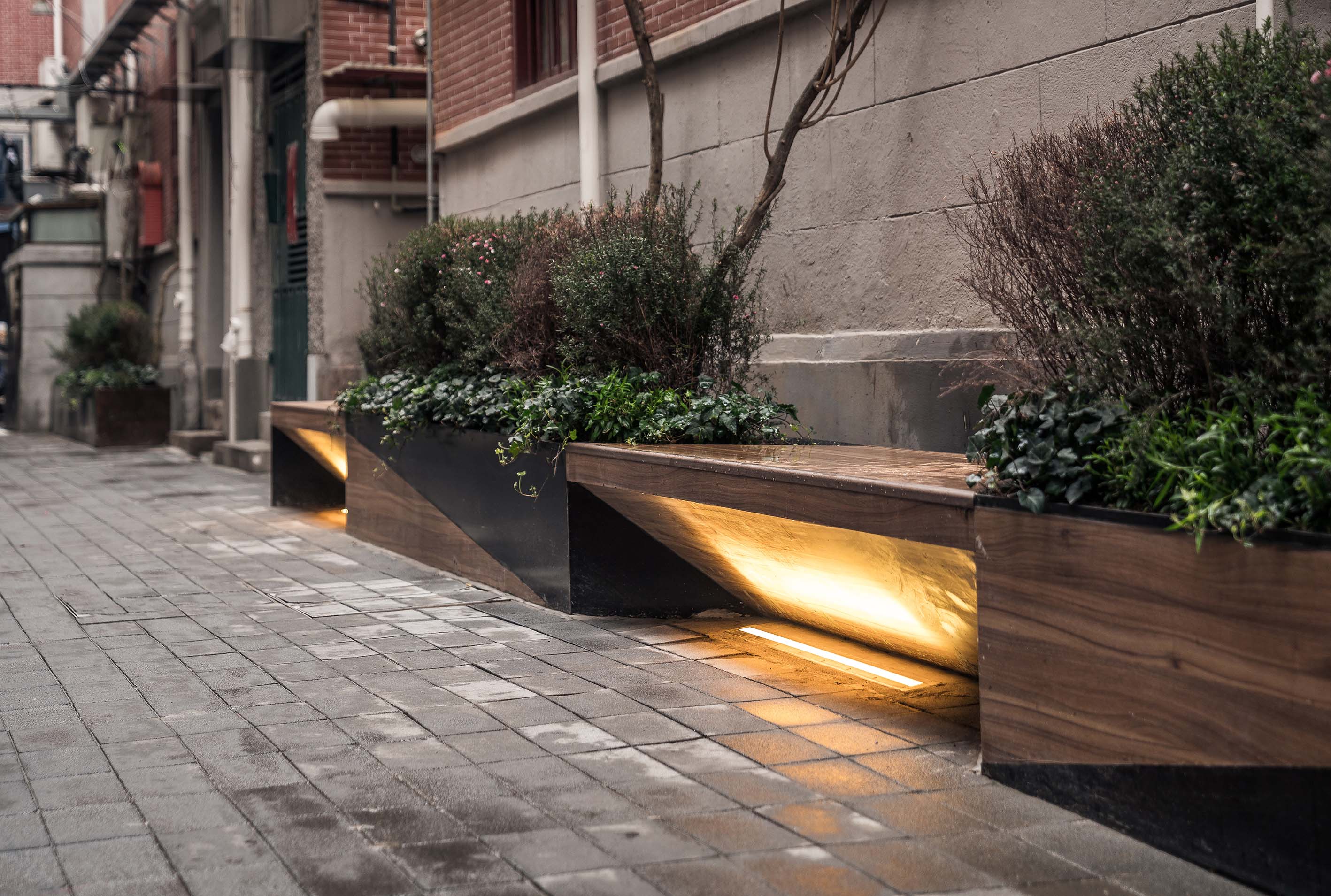 设计师根据动静分区的原则梳理了交通流线,采用了新的地面铺装,引入了休闲长凳和新的植物,令原本灰暗的巷道再次焕发活力。居民也有了新的休闲社交场所。