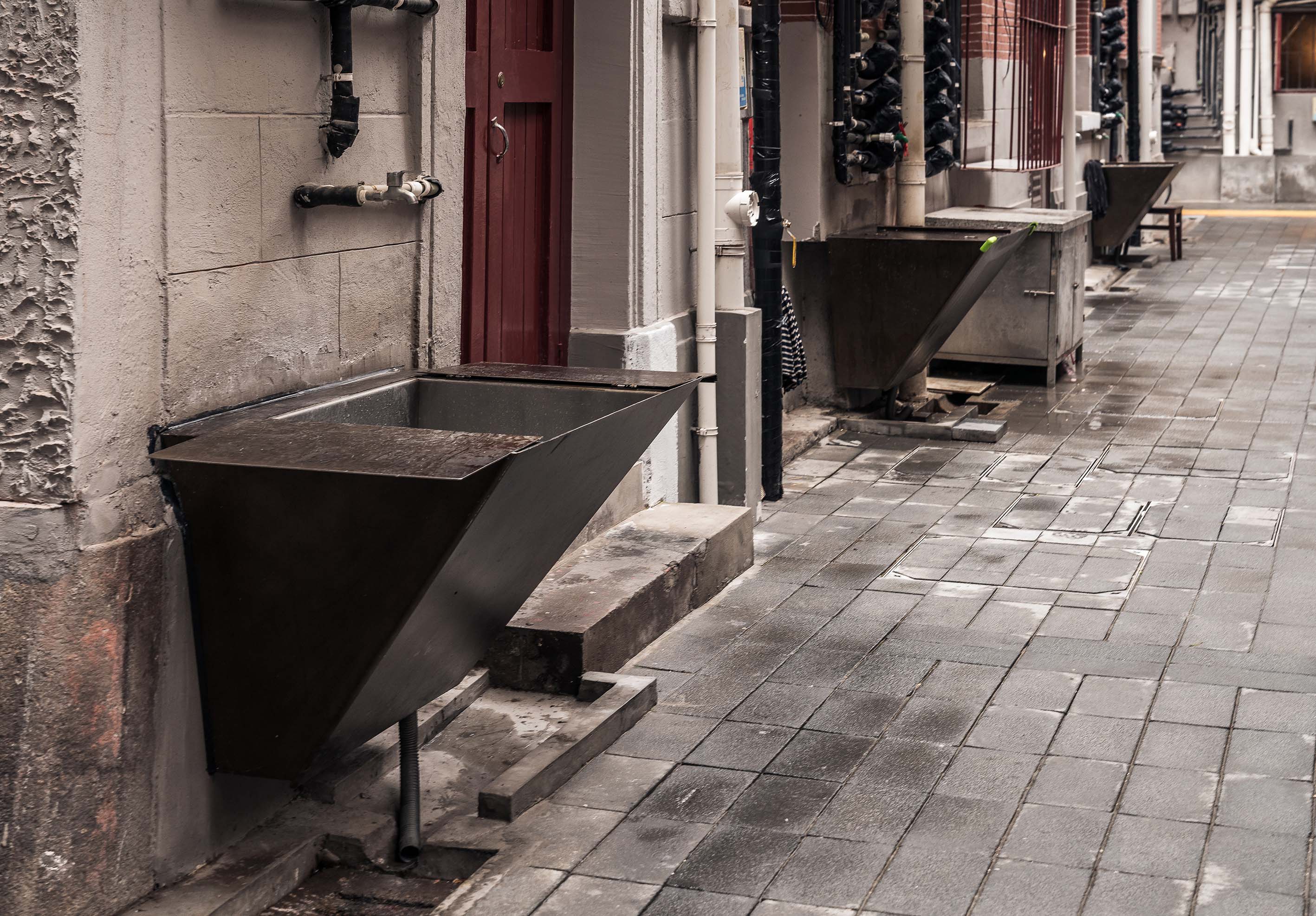 原有的户外水斗破旧不堪,卫生情况不佳。