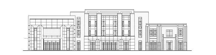 沿街界面延续高营大街的“遇见”街角风格,大体量的精神堡垒,增强了昭示性。