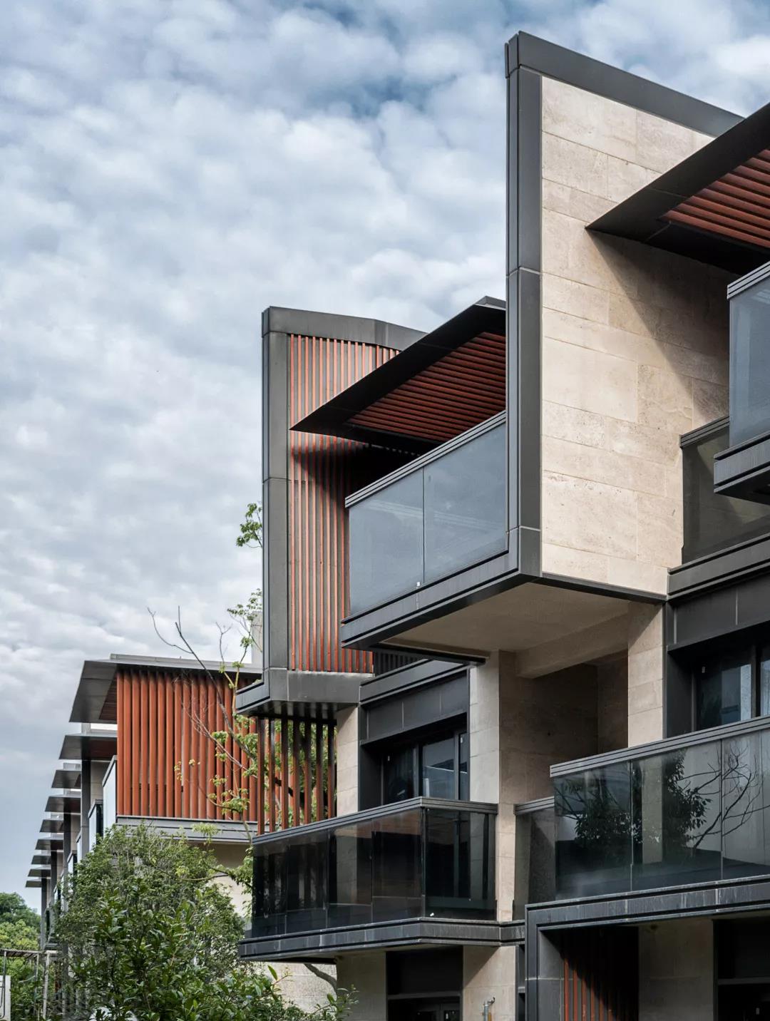 本项目建筑形式为现代风格。运用立体构成手法将片墙、百叶、挑檐、露台等传统建筑元素巧妙地拼接,不但使功能和形式完美的结合,也让建筑有丰富的立面变化。增加的细部处理,在形式上以简驭繁,做到简洁不失细节。