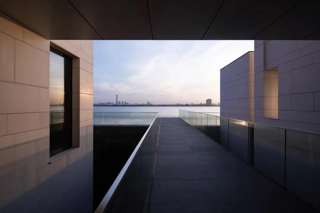 行走其间,远望的湖中明月与身旁的咫尺水岸让人产生超脱于现实的体验,这种空灵感来源于简洁清晰的空间布局。