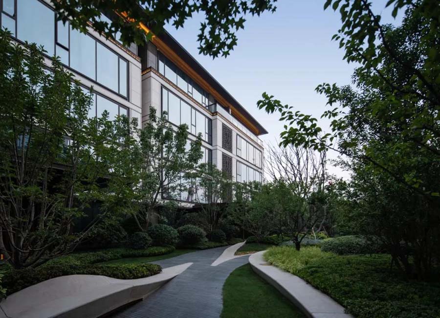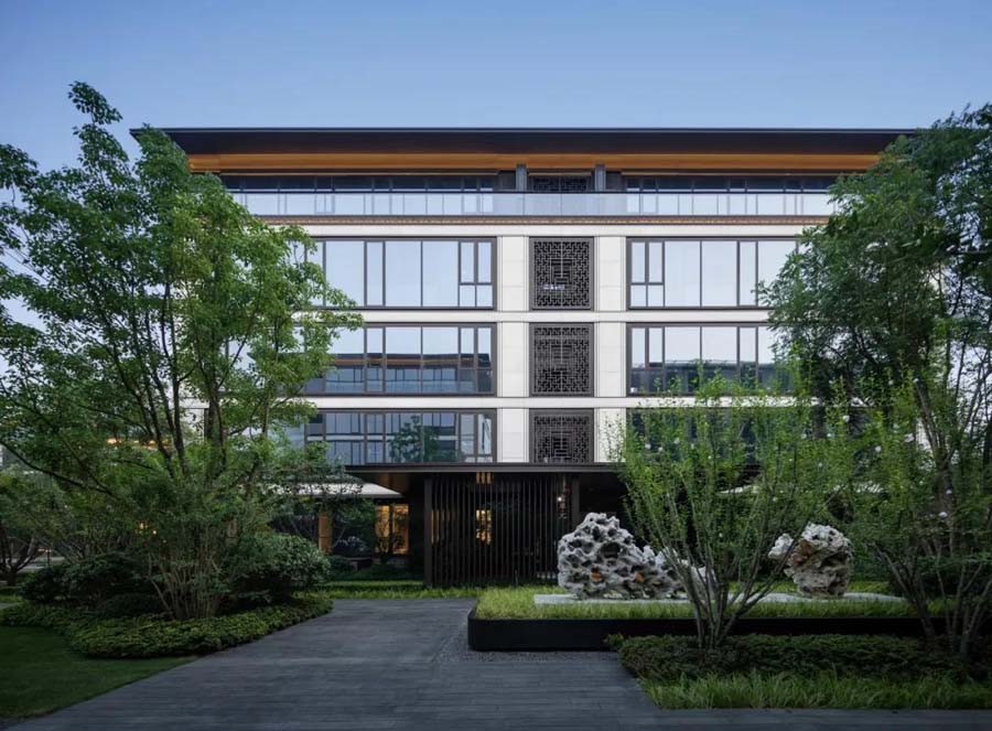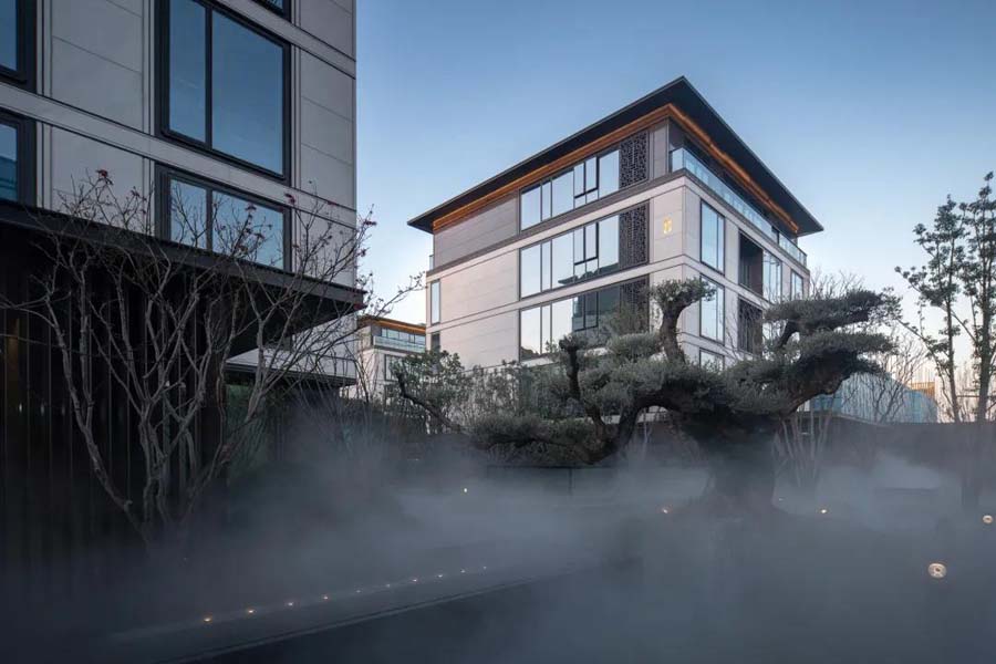 区域地块规划要求新中式立面设计风格,项目周边是一些传统的Art Deco辅加一些中式的符号和元素,形成了一些堆砌的符号性建筑立面造型。