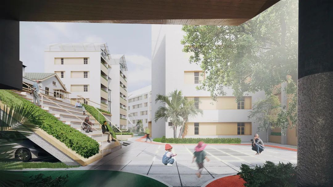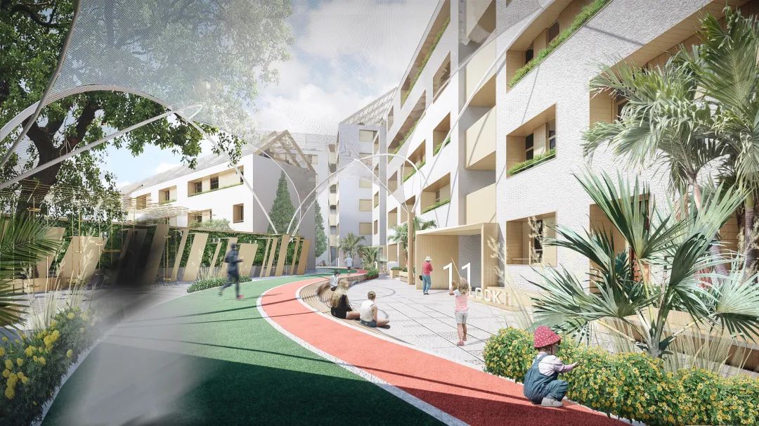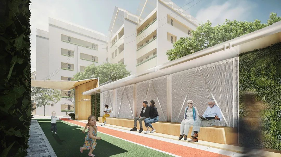 同时引入跑道,在保证功能流线合理的同时,通过运营活动,调节邻里关系,重建社区活力。
