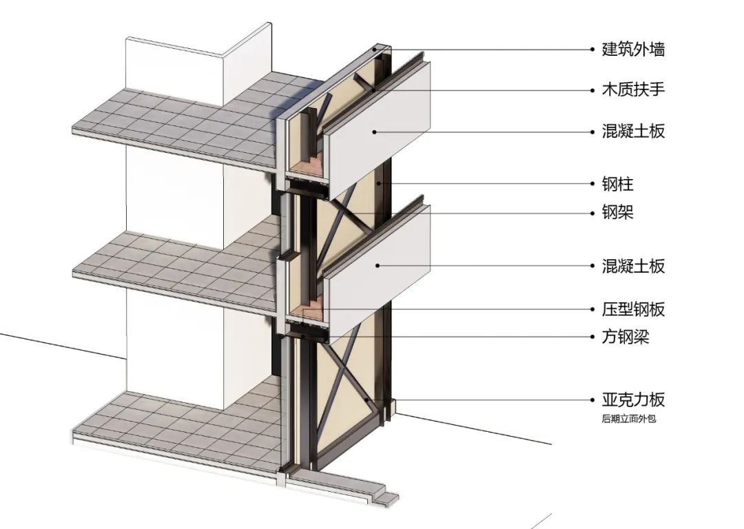 一方面通过设计元素的连续性获得空间氛围的整体感,另一方面为建筑改造升级后的居住功能提供适当的隐私保护,进一步地有利于在这个连续边界上植入使用功能,从而有效地利用闲置空间,完成从单一的空间边界到容纳多种功能的空间升级,在保证空间满足基本功能需求的同时也具有一定的精神导向。