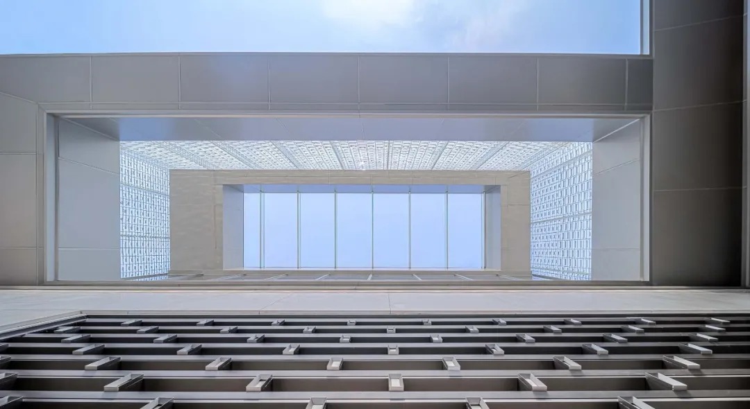 会馆廊桥空间简洁纯粹,具有一定的精神性。空间的塑造主要靠两侧的U玻和上下的界面,隐藏U玻的上下连接节点,让桥更具漂浮感。