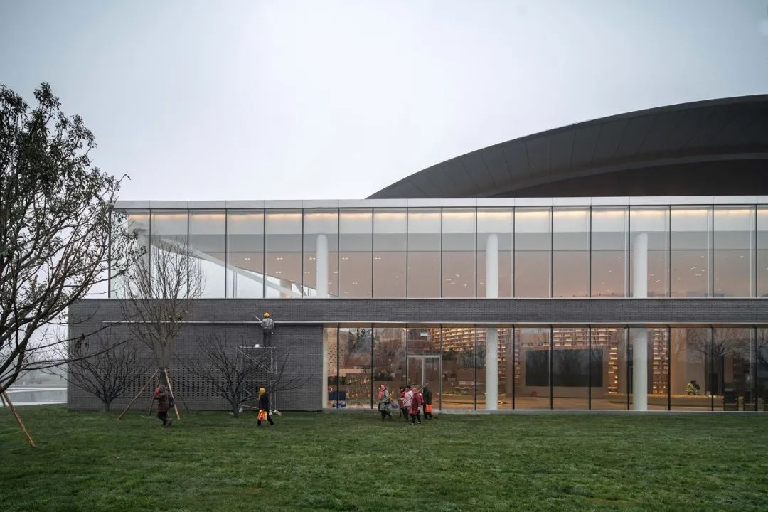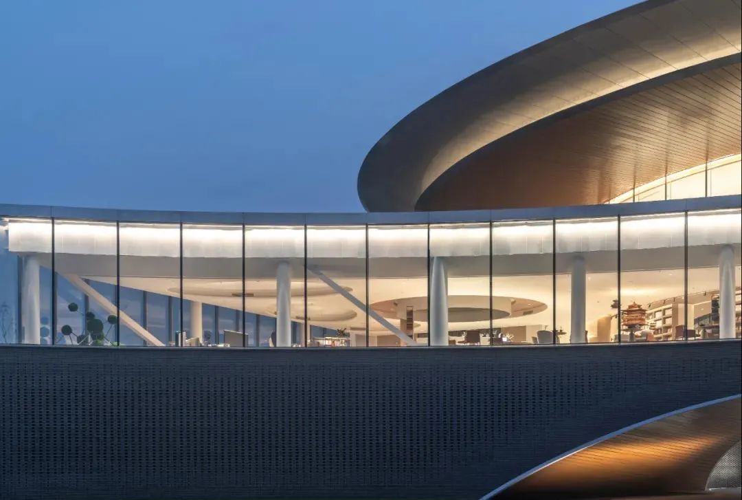 建筑正面更是以一道圆弧来呼应接纳前方的主体园林,大有环抱接纳、阴阳相融之势。