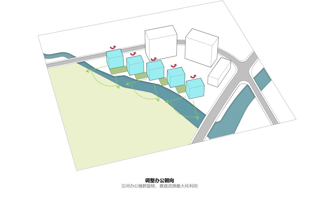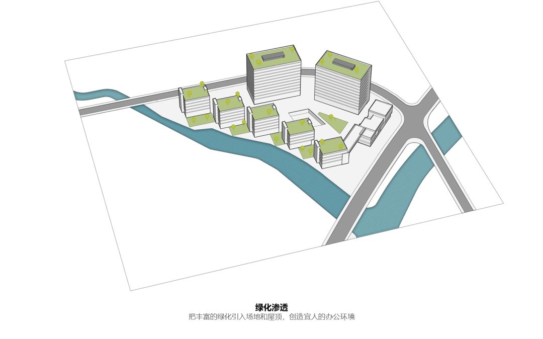 设计团队在读解用地条件后,通过研究集中办公园区的空间规划、各栋办公建筑的布局、多元的功能组合,形成了一个高品质体验的当代创新园区。