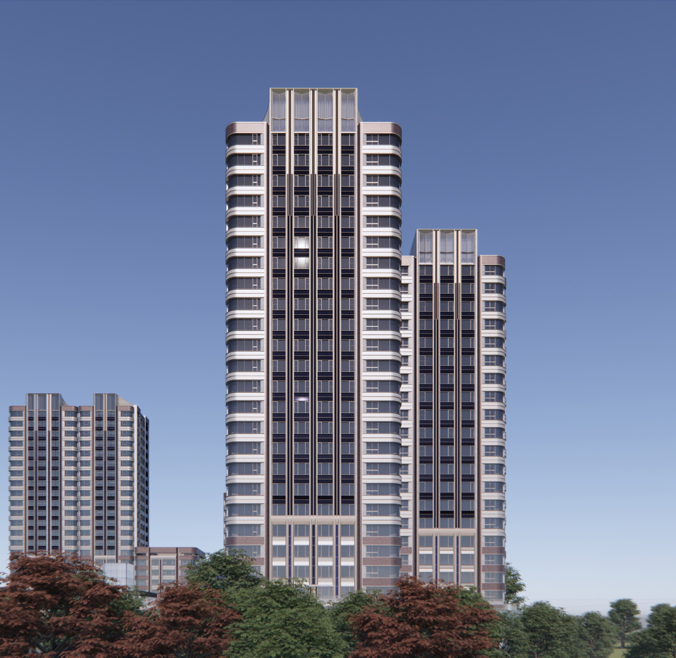 中興傲舍以"垂直复合社区"为核心理念,通过抬升式设计将住宅楼架设于商业基座之上,形成立体城市空间。项目创新性地整合了居住、商业与公共功能,为高密度城区开发提供了兼顾功能性与生活品质的解决方案。