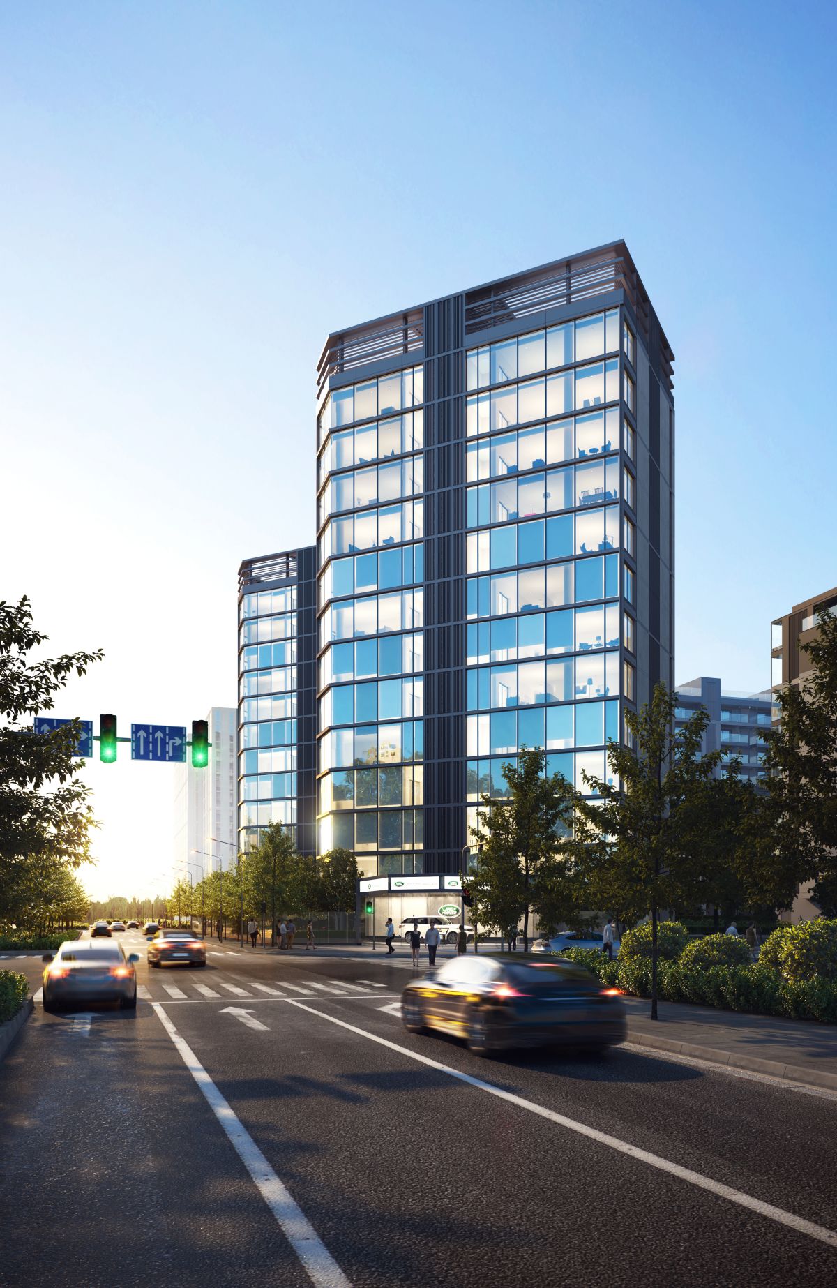 从城市形象,以及与周边环境和谐统一的观点出发,最大化利用场地良好的景观优势。 建筑呈回字形周边街道排列,形成围合空间,与周边景观资源互动,同时中央形成较大的集 中绿地为住户提供更好的景观享受。