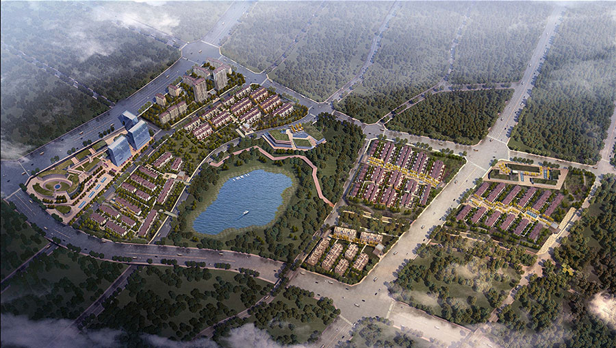 示范区选址于项目核心地带,南向面湖展开,视野开阔,背部群山环绕。我们希望建筑于山水之间能够实现“图”与“底”的最大程度的互益共生。