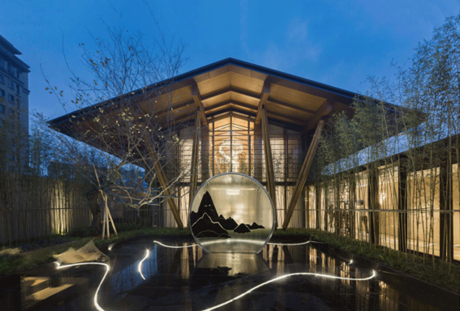 示范区作为项目展示的点睛之笔,起承载着传达项目主旨,传承城市文脉的使命。从“甲第世家,书香名宅”这样的展示理念出发,将甲第公园三进礼序作为设计概念。将甲第世家的故事线通过建筑空间表达成为了设计的主要命题。