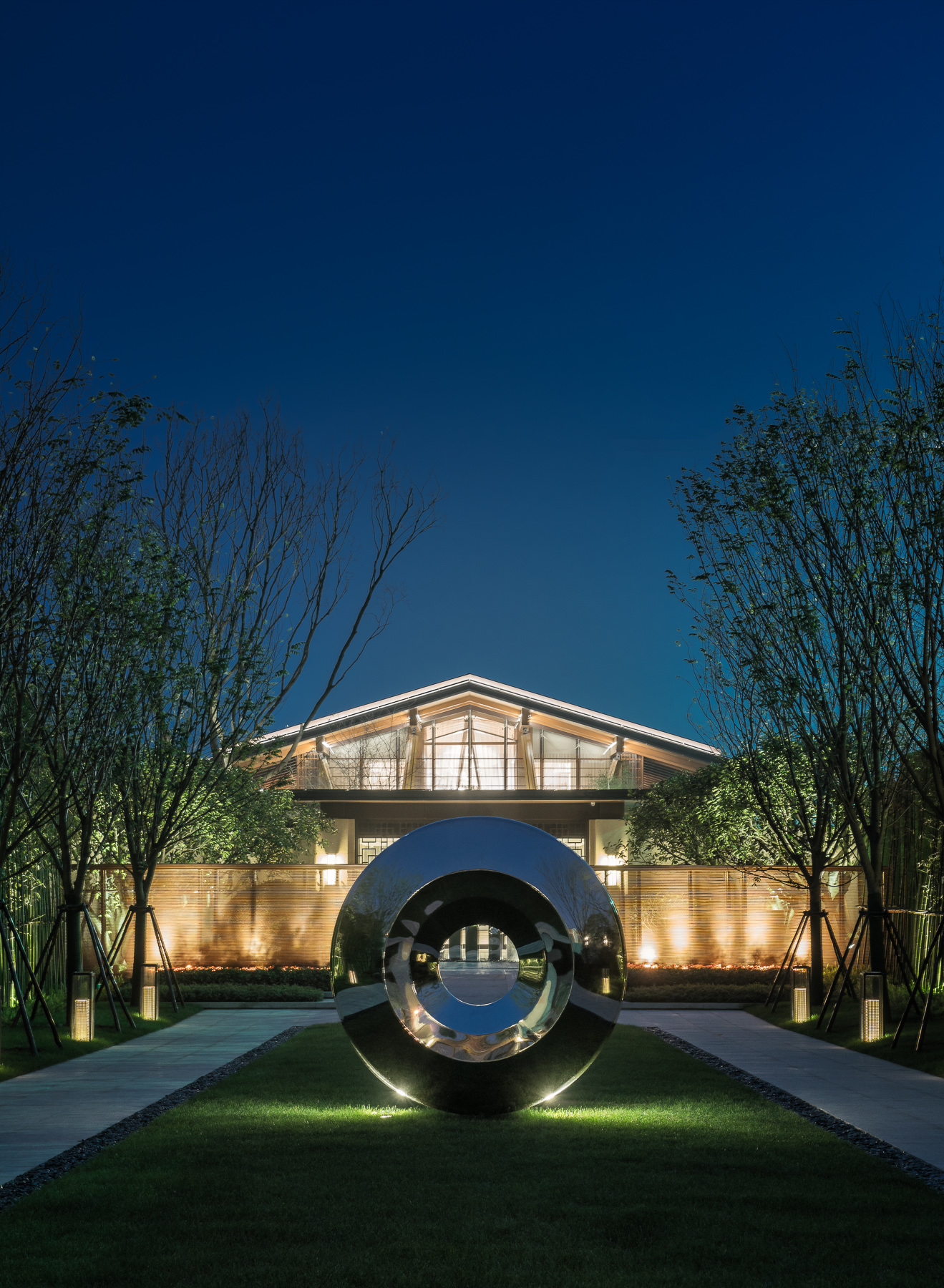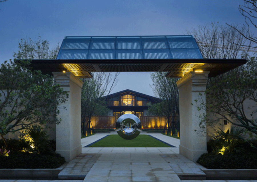 ◎接待厅庭院内的景观雕塑