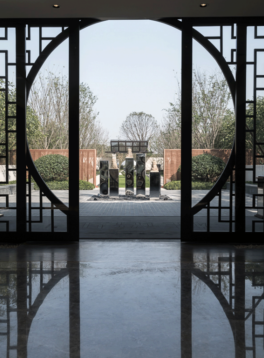传统园林是由建筑、山水、花木等组合而成的一个综合艺术品,富有诗情画意。现代空间与动线虽有诸多演变,但仍可与传统意境达成统一,我们正式通过组织多院落的秩序与层次复现江南园林的自然与优雅,而建筑与庭院的空间和界面的交叠也被仔细考量,将传统意境通过现代手段表达出来,达成整体意境的统一。