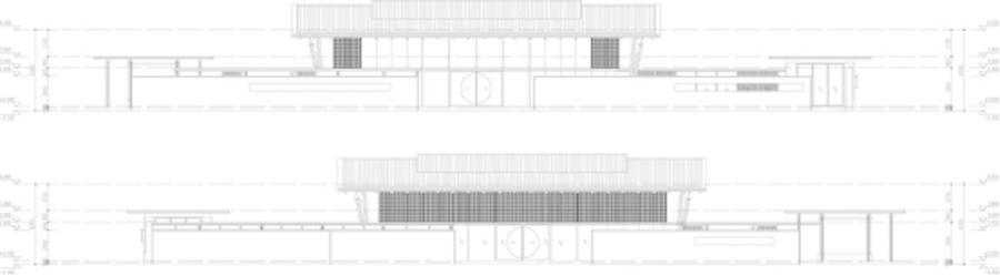 传统形式与现代构筑方式之间的对立,在立面的设计中被传统制式的建筑语言消解,钢筋混凝土的结构被灰瓦、木构、赭石立柱与米黄片墙所包裹,柱、墙、窗的虚实对比,开间上对称的秩序感,细节上传统做法的符号化处理无言的表达着立足当下而对传统的眷恋。立面成为空间造型的延续,围合庭院的界面,成为带来空间流动性的三维介质