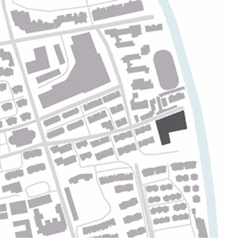这样一个L型地块的“边角料空间”。地块规模相对一般城市宅地而言明显偏小,同时地块本身又具有复杂多功能的设计条件。这些都给设计实践带来了一定程度的限制与制约。