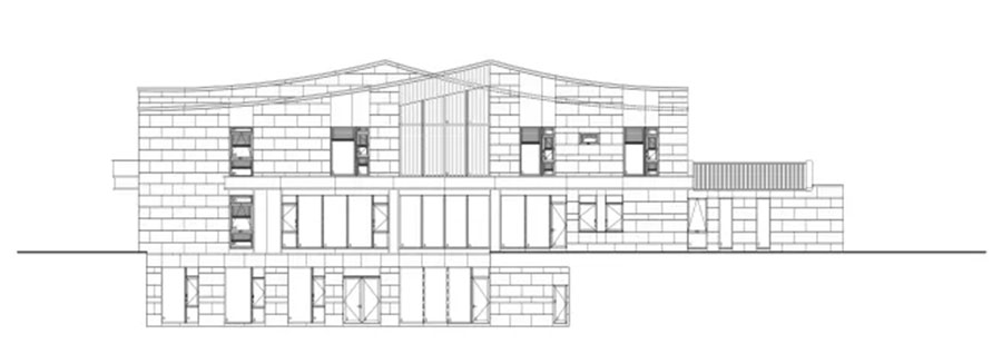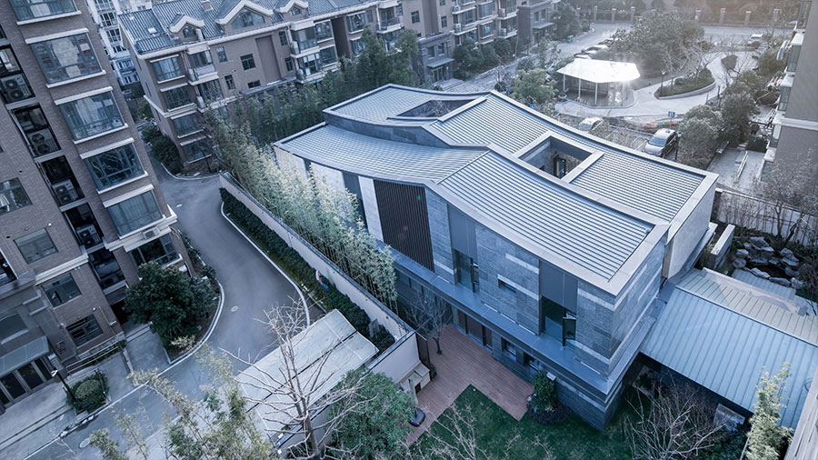 以本土风格中江南传统民居建筑形式作为原型。通过比例、尺度的研究,两个体块在不同曲率弧型屋面的交错形态秩序下,统一起来。形成一种清晰肯定的舒展关系。