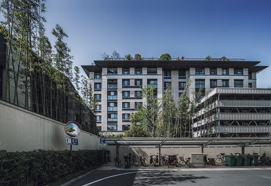 一条通长的巷子,配合两侧的竹林,渲染出一种静谧的氛围。众多诗情画意被植入空间,于现代语境的铺陈下,讲述着回家的故事。