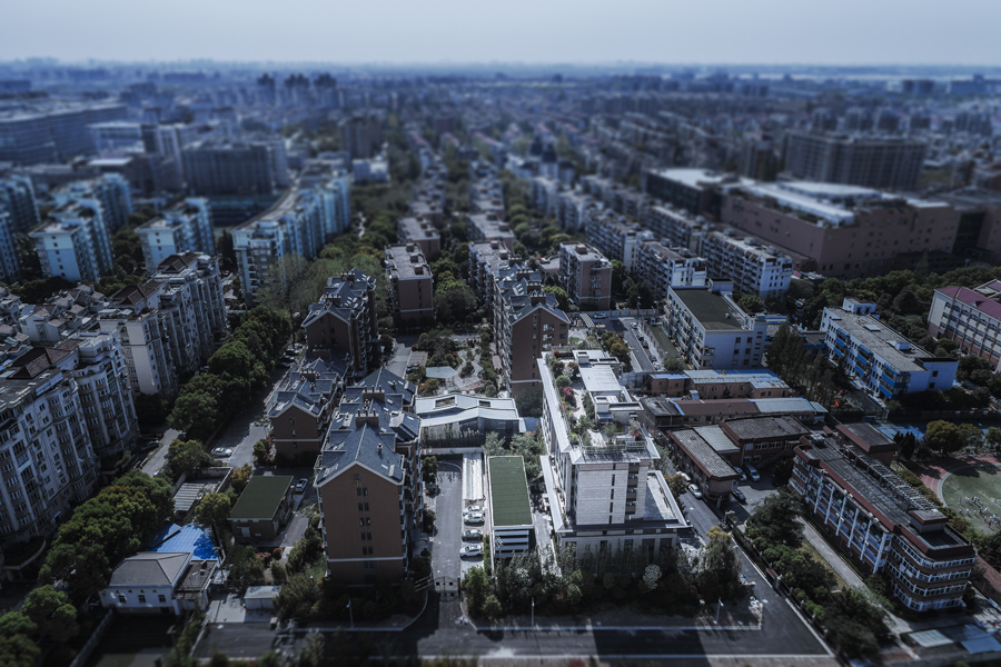 本案位于上海市闵行区龙柏街道,这是伴随着现代城市土地出让制度变化而产生的一个L型“边缘地块”。地块面积3000多平米,仅北侧有一条连通城市道路的街坊路。周边被一系列在经济圈地过程中,利用级差地租开发的商品房,挤住并包围起来。呈现出标准化建造后的整饬与单一。