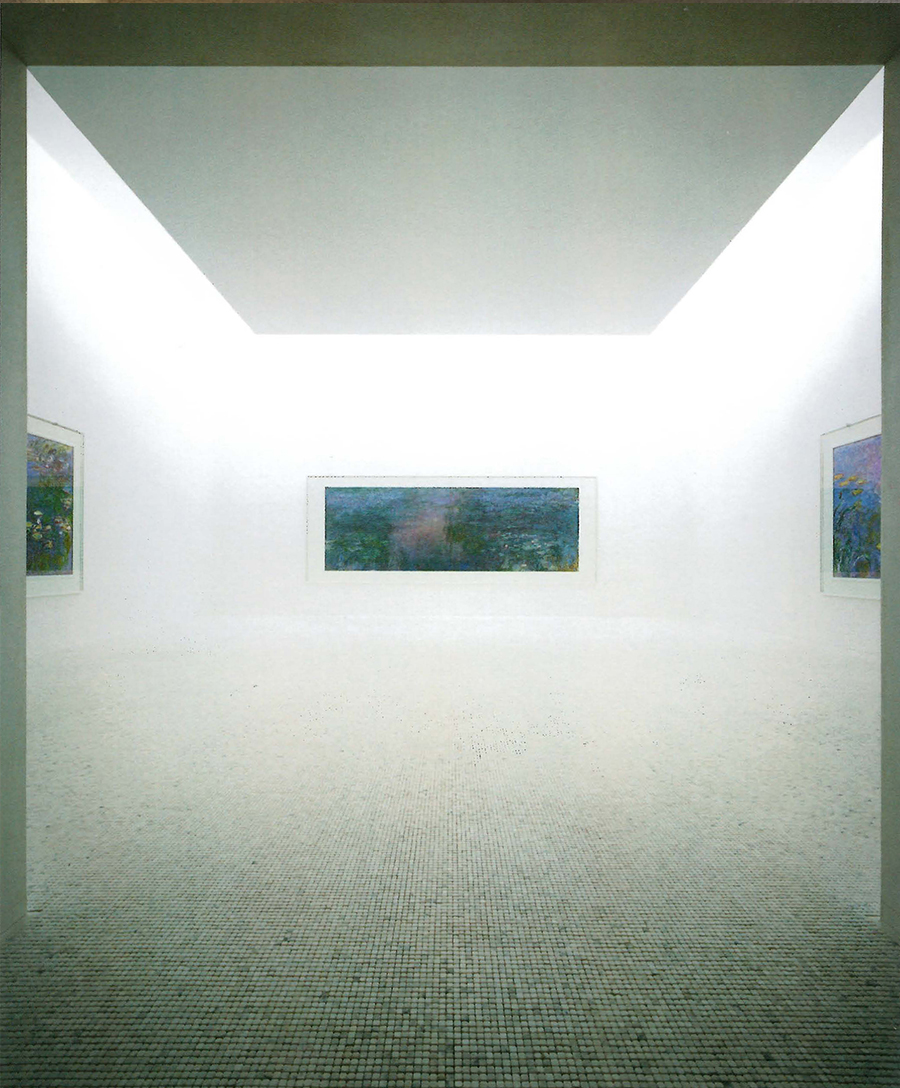 第二个博物馆是安藤忠雄设计的直岛地中美术馆,设计师在展品与展馆的关系上可以说是量身定制无缝连接,其中最震撼的就是三幅莫奈“睡莲”馆,从幽暗的走道开始,白色着装的服务人员,到进入展厅后,弥散在半空中的巨幅油画,所有铺垫最终的目的是让这三幅印象派的油画具有更好的欣赏效果,可以说安藤是莫奈百年后的知音了。