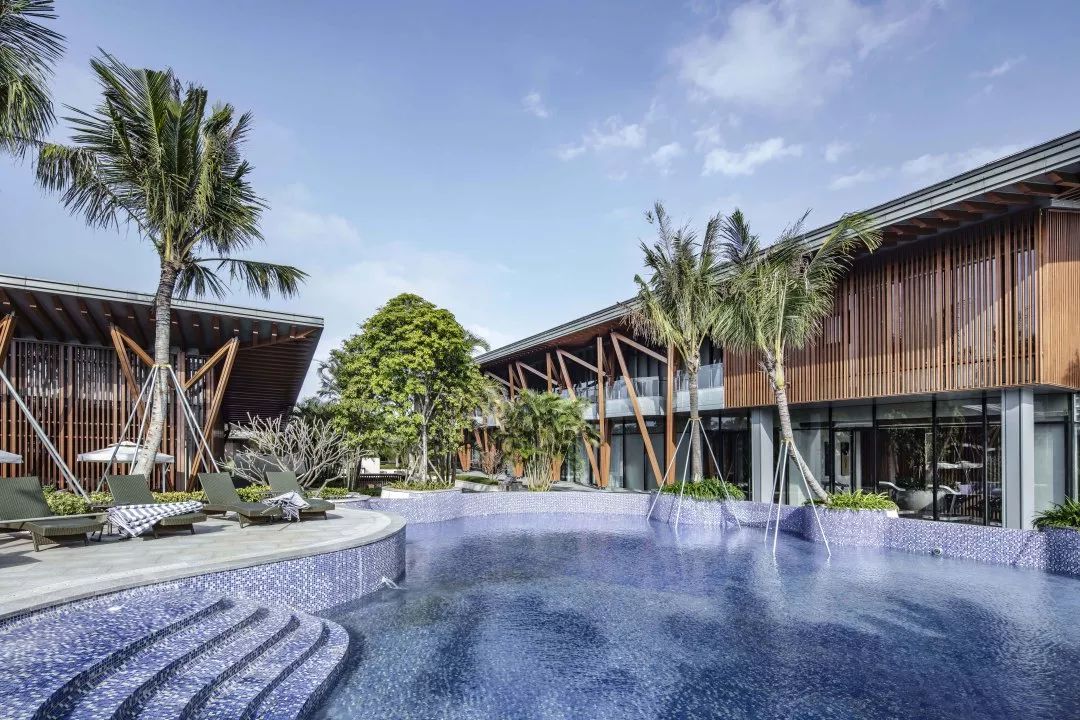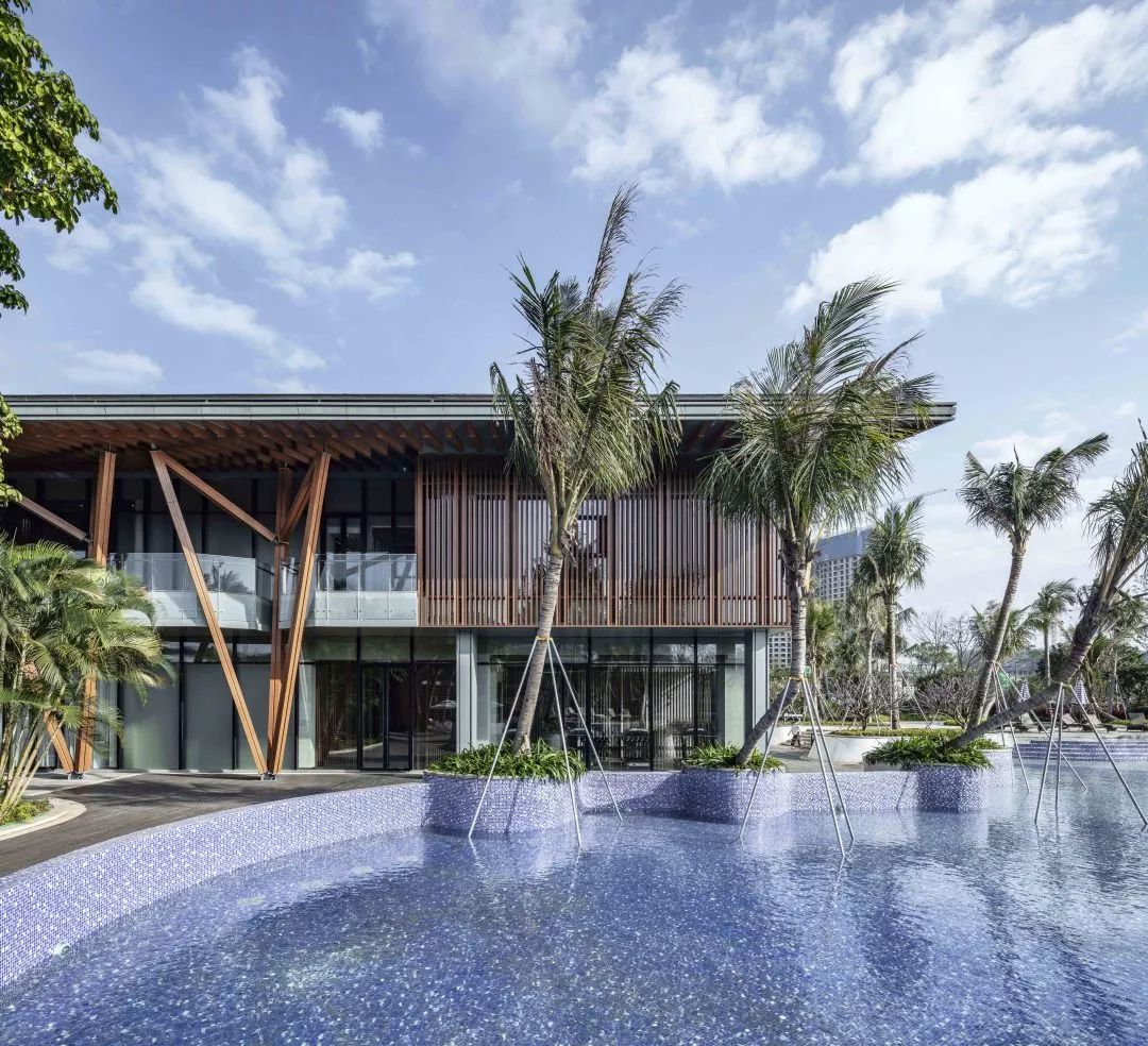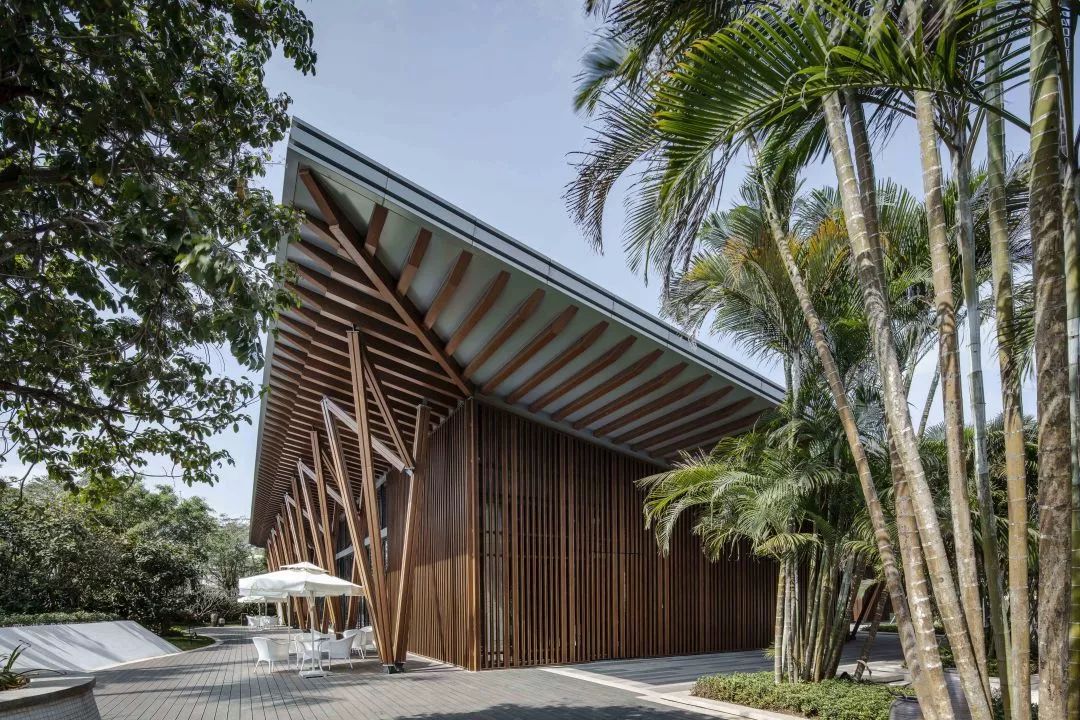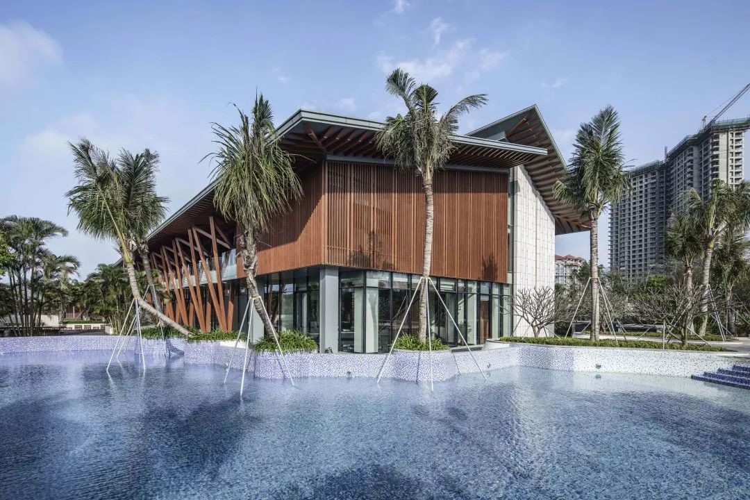 海口鲁能生活馆位于迎宾半岛的中部,南向内海,北临外海,斜坡横墙,一方水院,掩映在郁郁葱葱的热带浓荫中的建筑体量组合了商业、健康、休闲、娱乐、销售多种功能,后期将作为整个东二西社区的生活配套服务中心。
