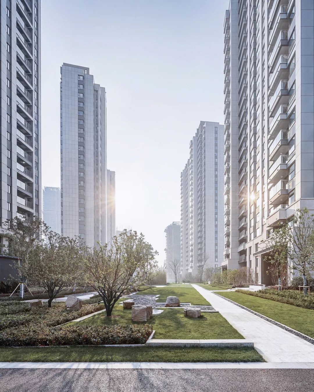 项目定位为高端国际化社区,城市中的公园社区。预留足够的户外空间进行景观设计,提供运动、休闲的国际化生活方式。以现代的形式演绎苏州园林之景,营造宜人的城市居住空间和环境。
