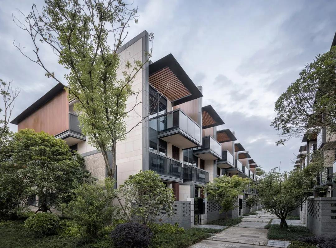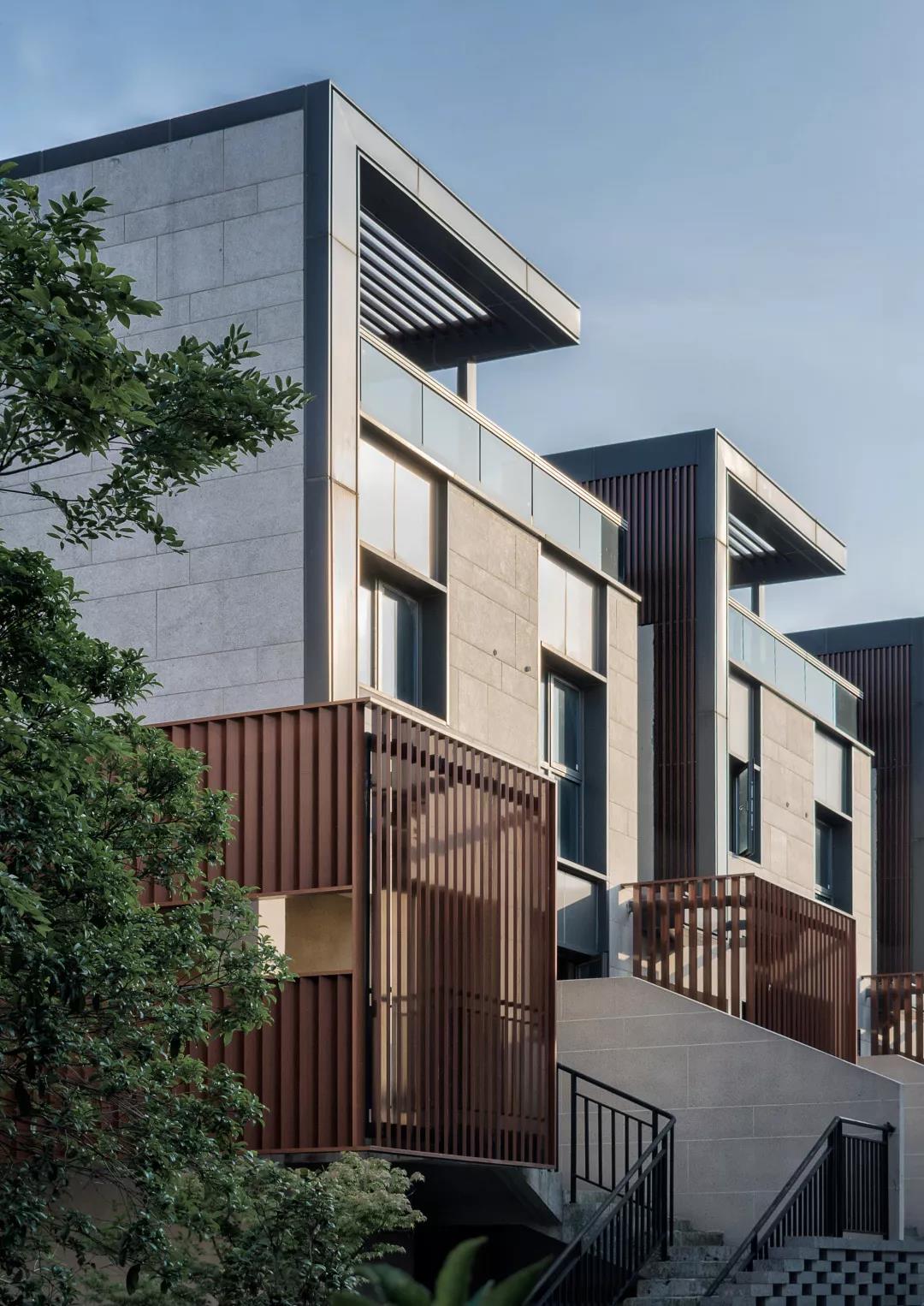 本项目建筑形式为现代风格。运用立体构成手法将片墙、百叶、挑檐、露台等传统建筑元素巧妙地拼接,不但使功能和形式完美的结合,也让建筑有丰富的立面变化。增加的细部处理,在形式上以简驭繁,做到简洁不失细节。