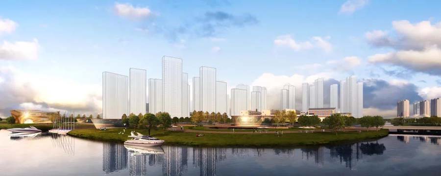 本项目不仅是办公、商业、酒店、住宅、长租住宅等众多业态组成的金融港湾,我们还因地制宜,将“港湾”的概念加以延伸,结合水厂旧址和运河风光带设计了一系列主题体验区。