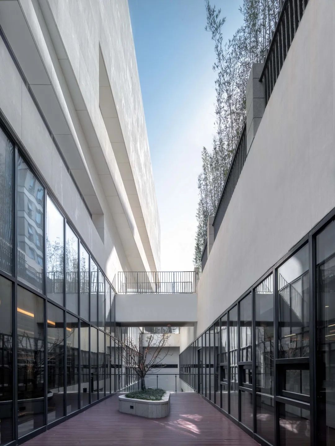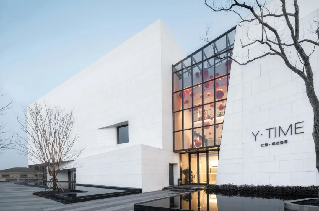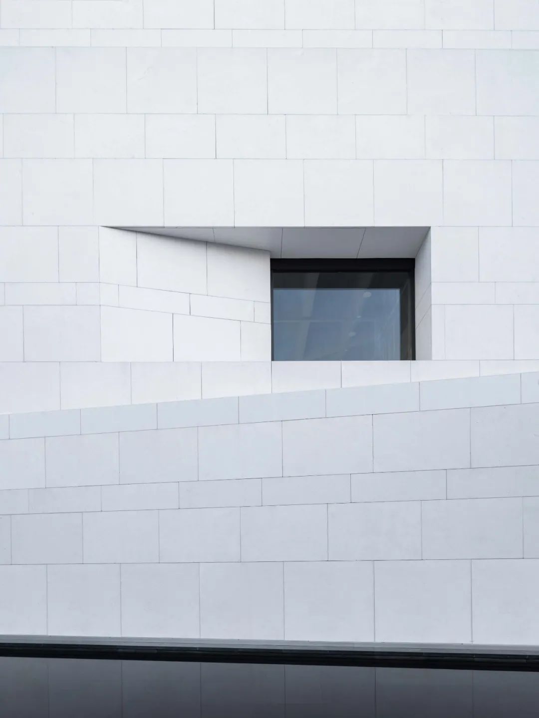 建筑主体选用更具质感的葡萄牙白色砂岩干挂而成,白砂干挂与玻璃的材质形成鲜明对比,在亦虚亦实间完成了对空间的诠释,带来了一种强力又安静的氛围,让整个建筑形成一个更纯粹的空间关系,能够感知人的情绪,存放身心的场所。