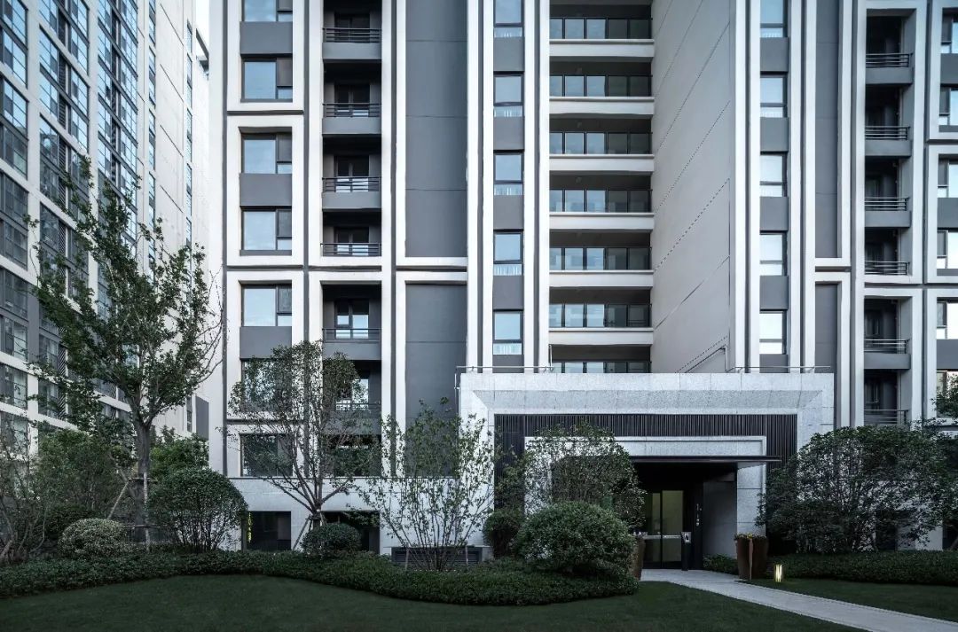 暖灰色的石材,以相同的模数进行竖向划分,强调垂直感、简洁感。