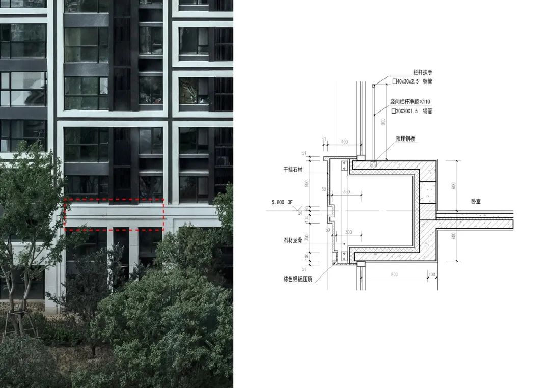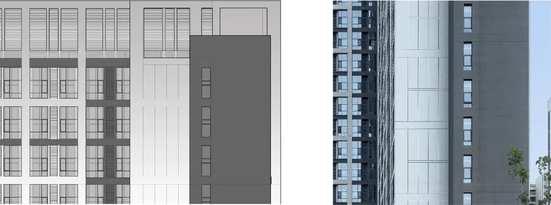 整体立面设计遵循“线-面-体”的构成逻辑,整体线条中间加入深色 使线条更加硬朗挺拔。通