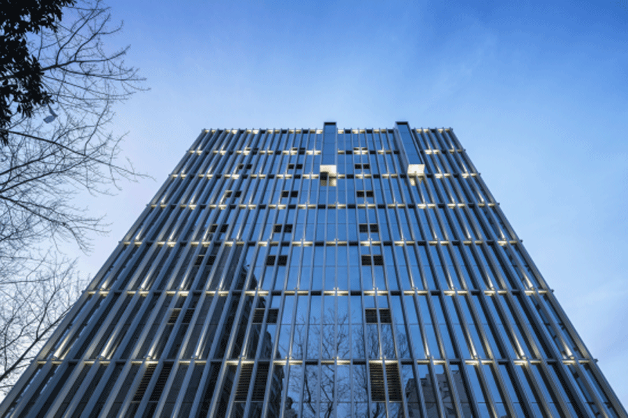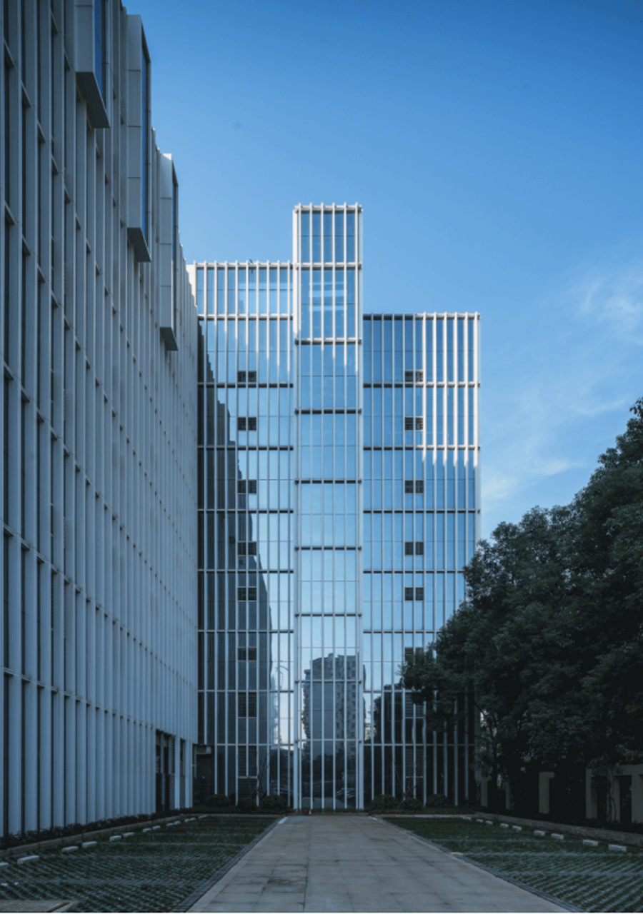 遮阳系统:立面的装饰杆件又可以作为标准的侧向遮阳系统,以减少低角度阳光的直射。