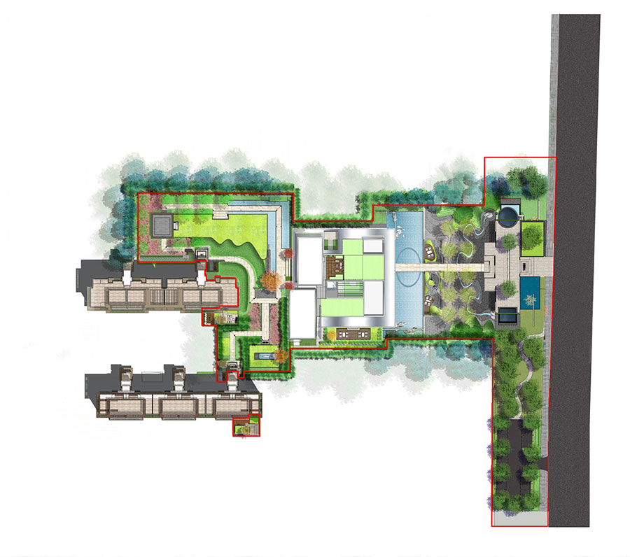 很长一段时间,建筑和景观都是作为相对独立的,甚至是互相割裂的二个元素存在着,使用不同的语言逻辑,表达各自的哲学。旭辉吴江项目,日清力求在同一场所中取得建筑与景观的平衡和相互渗透。