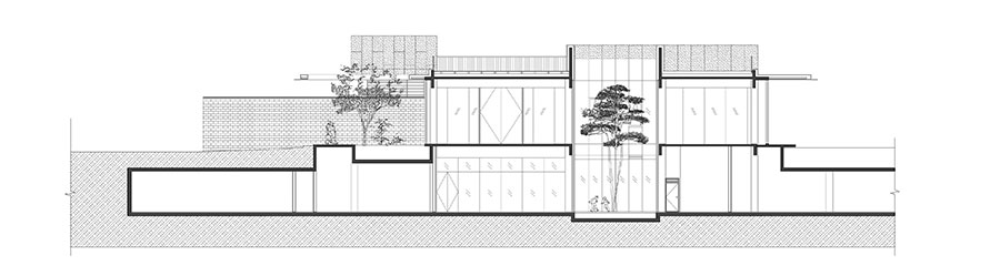 最终形成的建筑立面不仅是一个建筑形态的表达,更是建筑与景观园林的一体化表达。在这其中刚劲简练的建筑本体、抽象精简的中式屏风、室外景物小品、室内光影、以及参与室内外活动的访客,共同在建筑立面之间构成了一副被压缩的浅景深画作。这景致是吴江旭辉社区书院所有从设计到落成参与的各专业同仁的智慧结晶,他也将记载苏州人现代生活与园林情节的时空对话,成为吴江人生活的缩影。