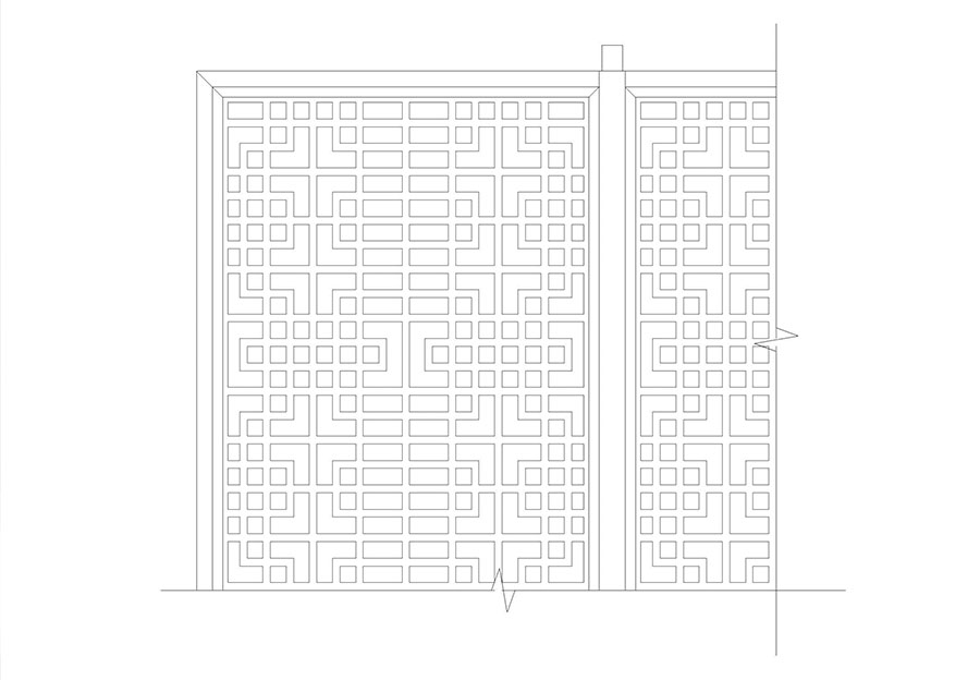 除此之外,还在玻璃幕墙外设置了建筑的第二层表皮,即一系列可旋转开闭的屏风。这一设置在不仅在视觉上增强了建筑立面的进深感,也进一步削弱了玻璃分缝带来的视觉阻碍。不仅在这面向东面的主立面上,由早晨的阳光透过它投出丰富多样的光影,也在建筑节能与文化属性上提升了建筑品质。