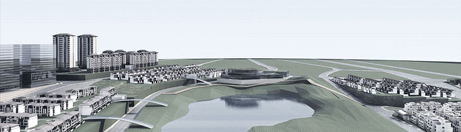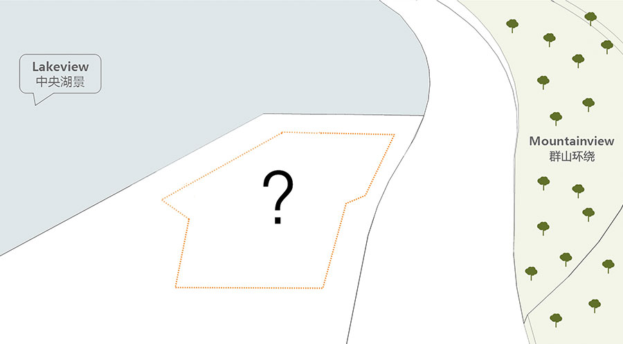 示范区选址于项目核心地带,南向面湖展开,视野开阔,背部群山环绕。我们希望建筑于山水之间能够实现“图”与“底”的最大程度的互益共生。