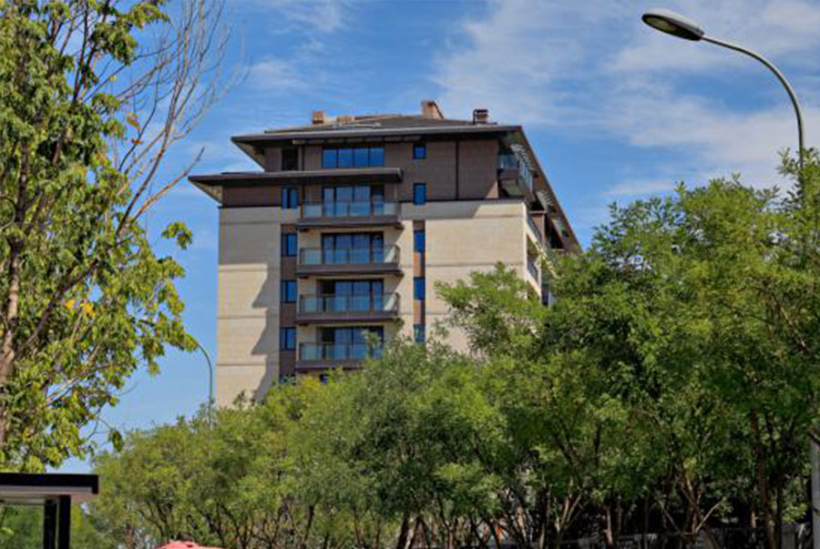 通过对北京的官式建筑研究,总结如下特征:底层的台基既界定了建筑所辖的空间,也营造了庄重的场所气氛;大面积的实墙保证室内免收冬季严寒侵袭的同时也传递出建筑的厚重;出挑的坡顶强调了建筑的水平向,也勾勒出了完美的天际线。对于如园项目我们希望通过现代的构建方式营造中国古典建筑的气质,底层私家院落的围墙在人视点的角度自然而然成为了建筑的基座;建筑墙面平整,以石材为主,强调体量的完整感,雕塑感;顶层的收分和大屋檐强化了水平向延伸感,也让整个建筑更见稳重。窗台局部有深褐色的金属线脚、压顶装饰,不事张扬,却也默默传达着大建筑的小精致。