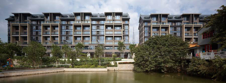 设计时,自然环境山水与人文环境保留建筑,这两个因素把商业打造成极具商业特性的休闲式商业面临了挑战,复合街区的概念最后定下了设计的基调。基于此,整个设计理念是:保留部分原本建筑的基础上,打造成兼具环湖国际的商业街区,城市顶级住宅和高星及酒店的三大产业态的现代岭南新都市生活。