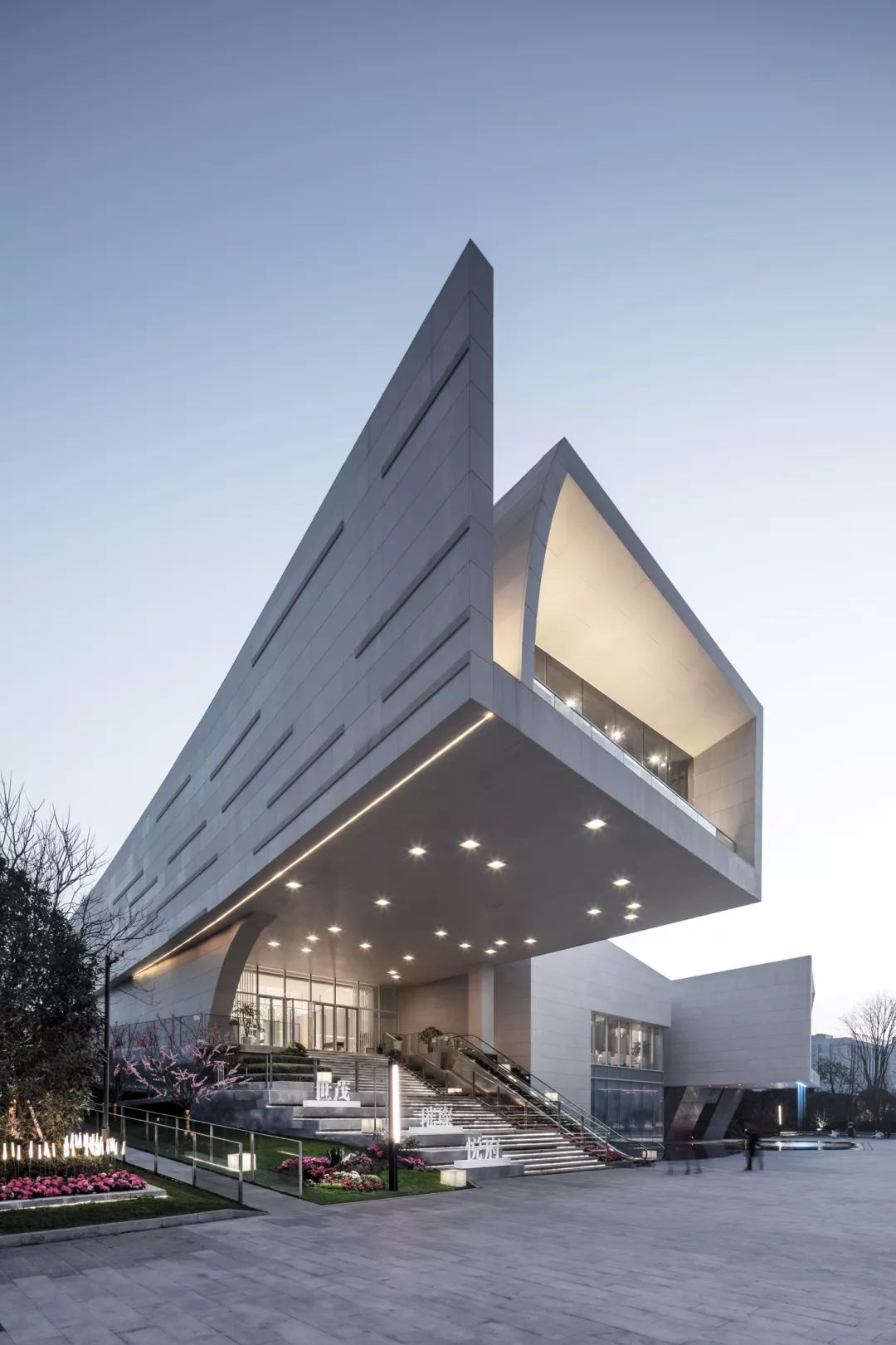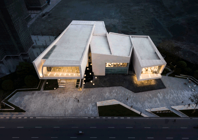 设计希望建立一个开放、包容的空间,通过强化建筑的雕塑感、营造大尺度的灰空间体现其开放性与互动性,让建筑融于城市空间,融于市民生活。