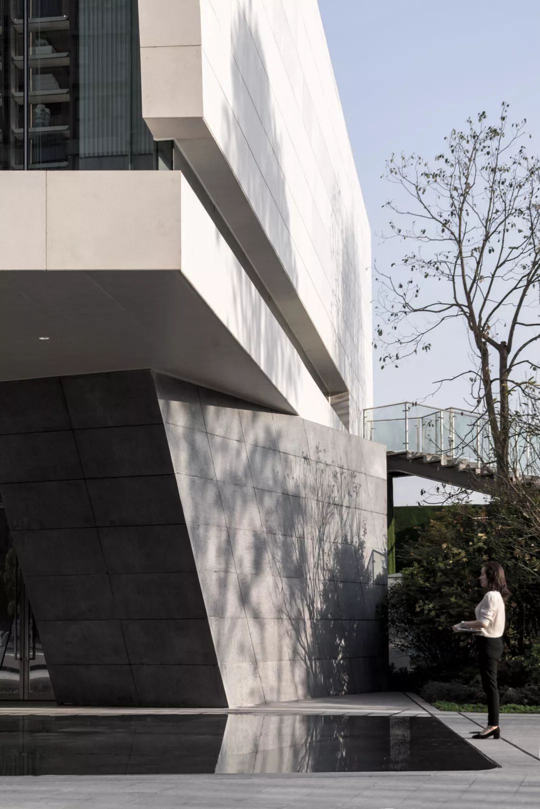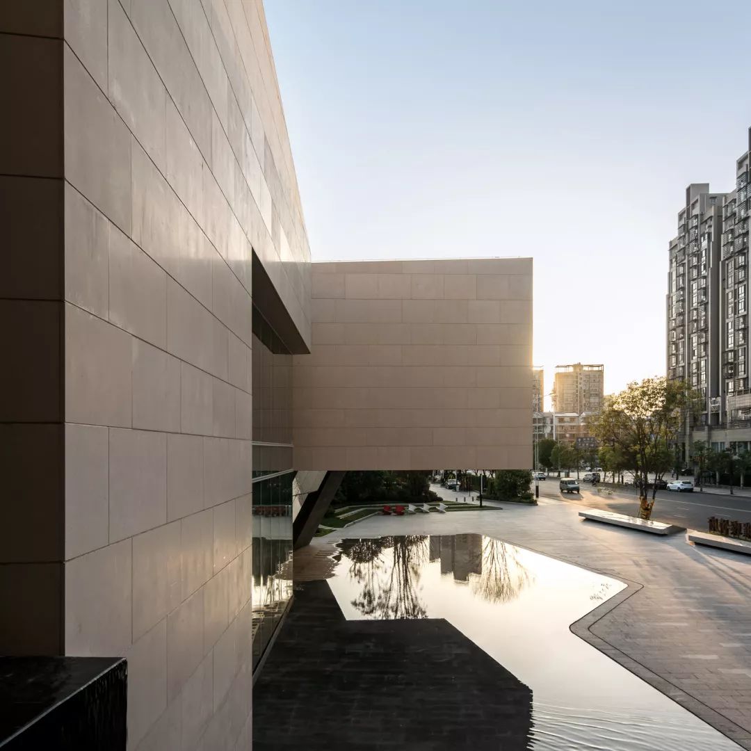 ◎景观水面呼应建筑形体