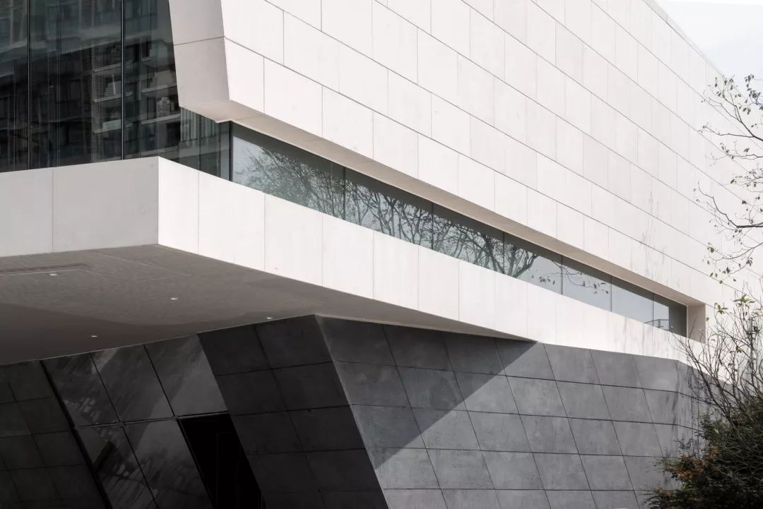 建筑的收口方式是整个建筑的亮点。本建筑有三处夹缝小于30°的凹槽,是本项目的幕墙设计挑战,通过施工方式的有效配合,最终在极小操作空间内将建筑的的节点表达到位。