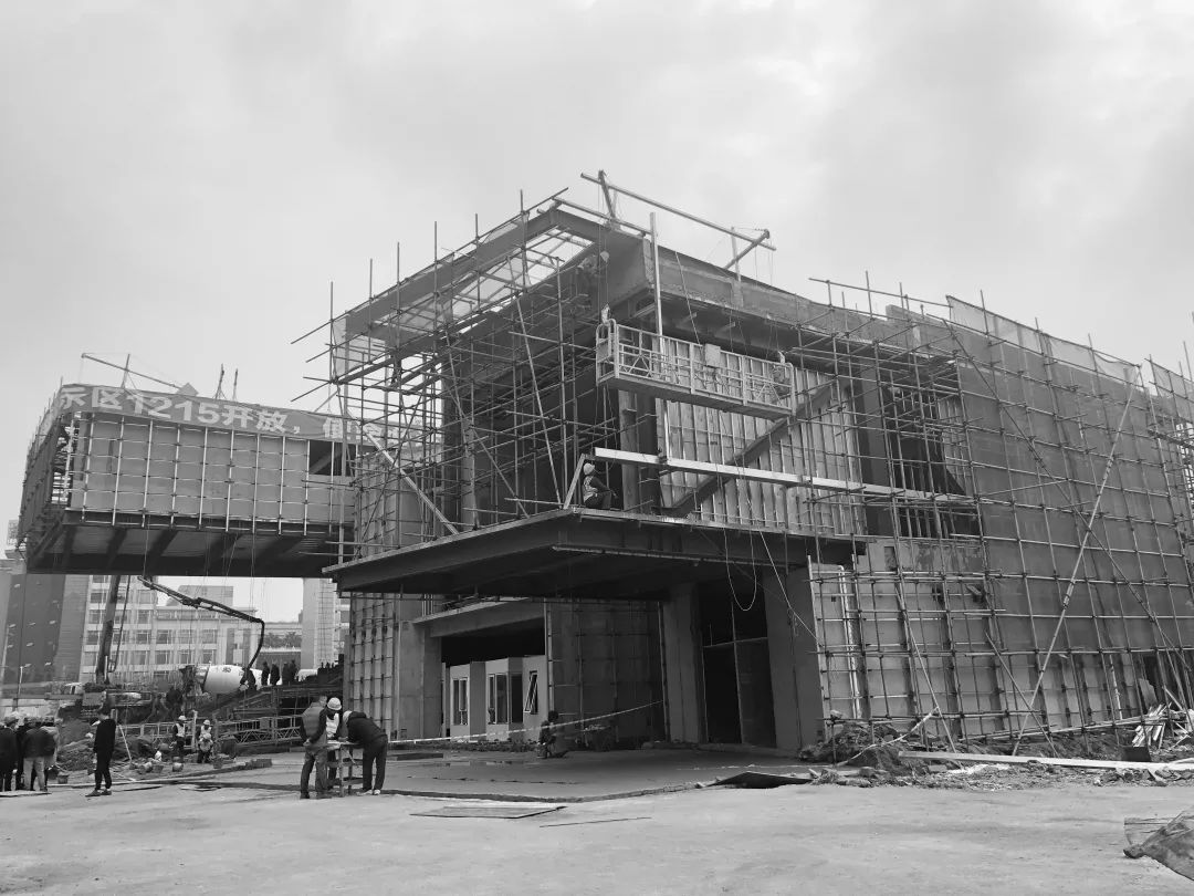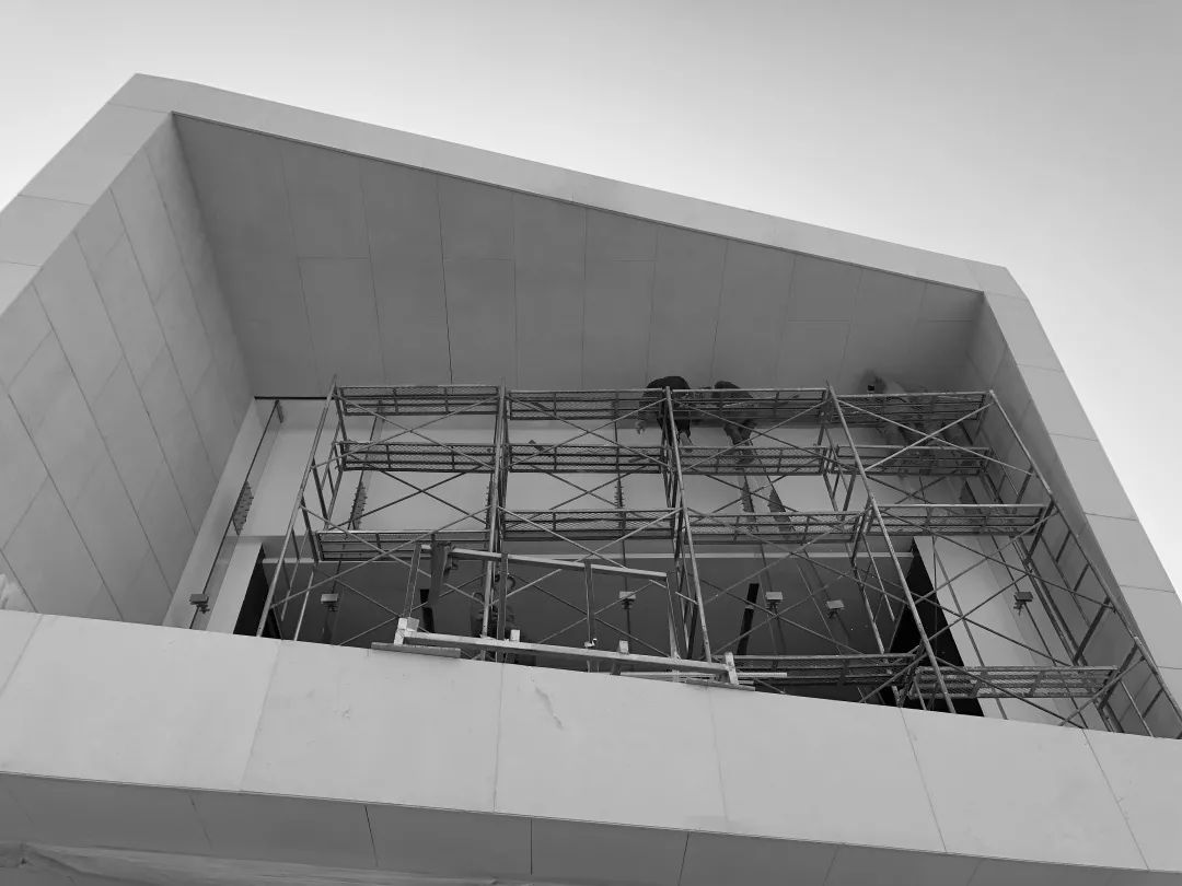 钢结构在工厂焊接完成,采取现场拼装吊装的方式,最大化的节省工期,节省人力物力。大小悬挑均采用钢结构桁架支撑体系,中间体块采用梁柱体系。
