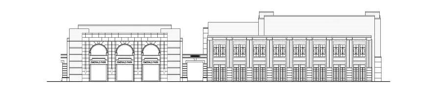 沿街界面延续高营大街的“遇见”街角风格,大体量的精神堡垒,增强了昭示性。