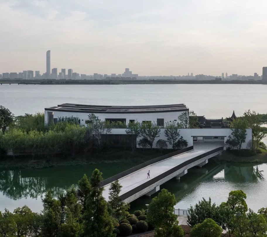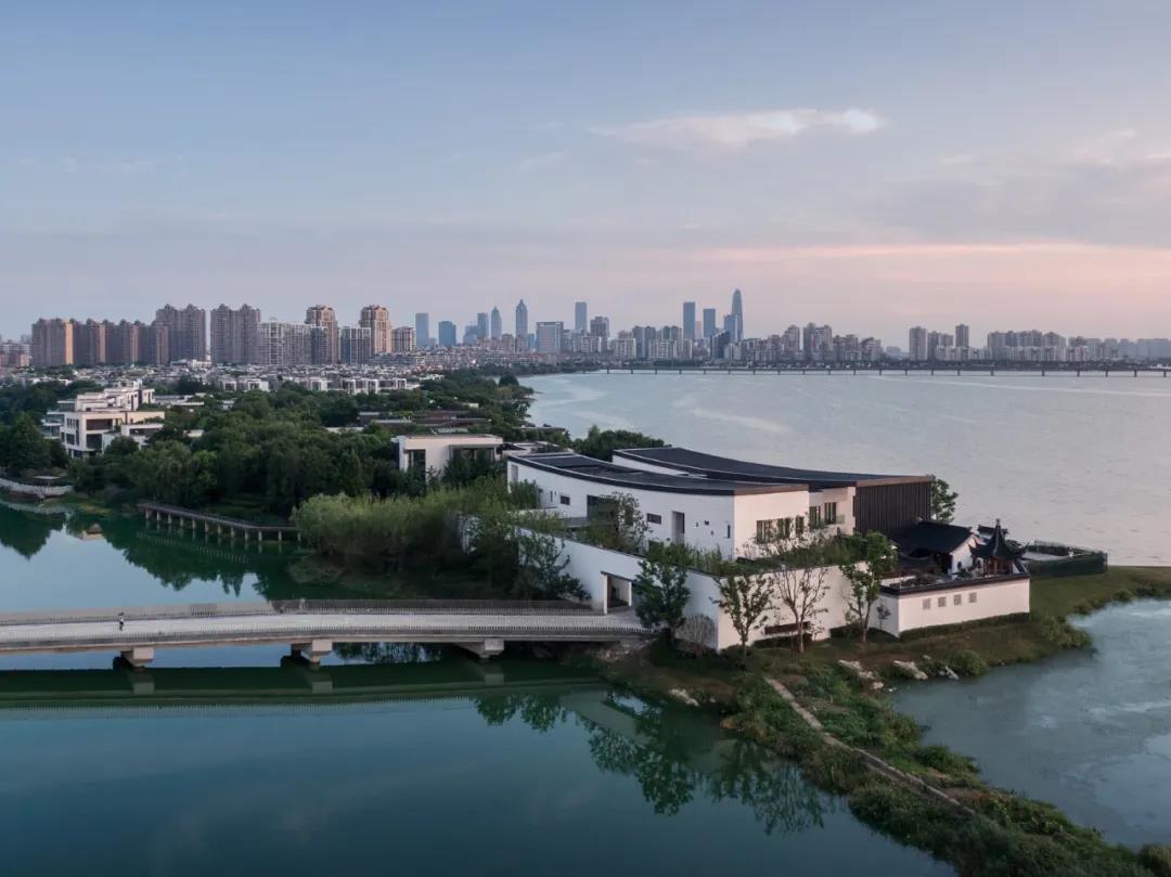 远处的烟波浩渺、延伸的水岸竹林、庭院与古亭的交错共同营造了场地内宁静致远的诗意氛围。