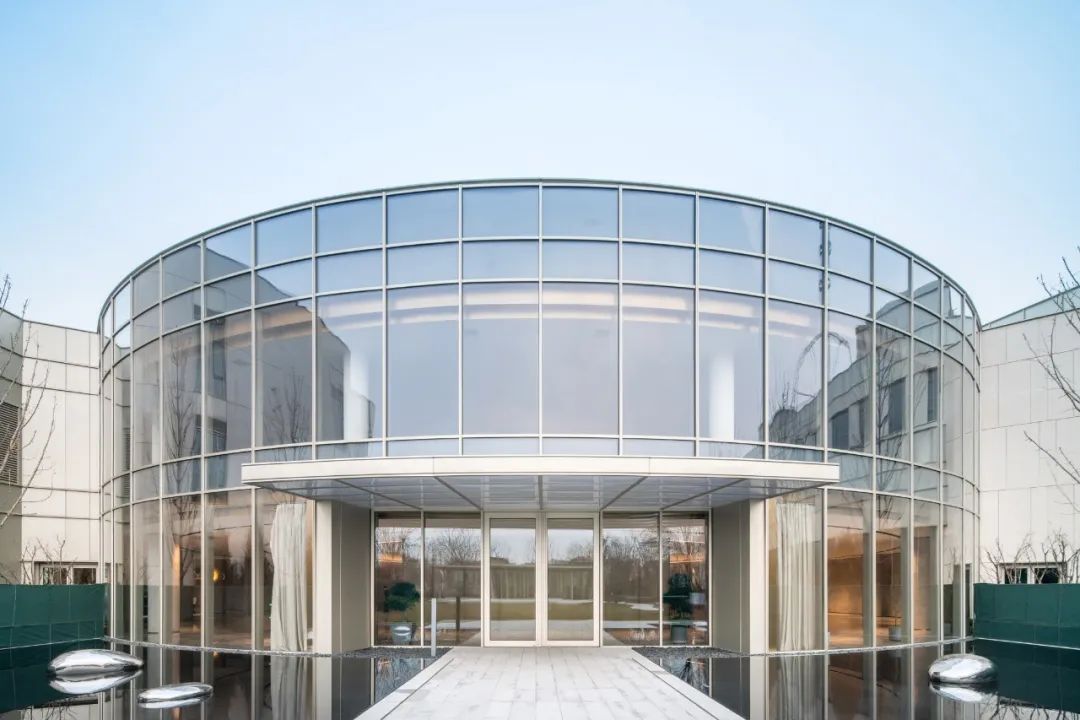 从东边的广场看过来,首先会看到一个36m宽15m高的玻璃盒子,白天高反射的玻璃面倒映着清晨到傍晚的天气变化,晚上这个盒子则成了一个发光体。