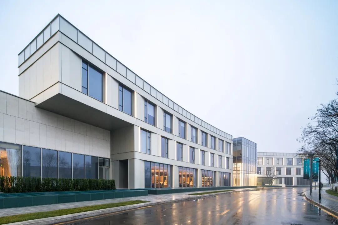 建筑立面的节奏首先是体量关系的节奏,每个体块根据功能分配了不同的立面处理方式,并充分考虑了节能要求,不锈钢格栅幕墙,铝板幕墙,玻璃幕墙,石材幕墙,这几种幕墙形式穿插搭接,减弱了整个建筑巨大的体量感,使得更有人情味。