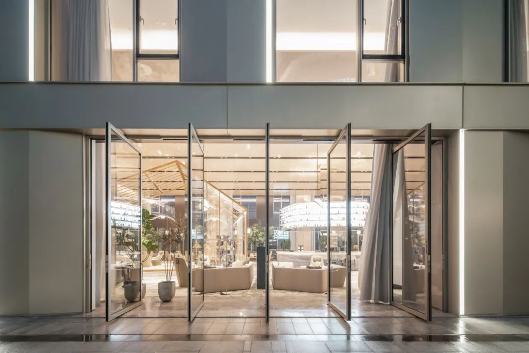 从前广场到门厅、品牌区展厅和后花园,形成了一道仪式感极强的收分有致的空间节奏。