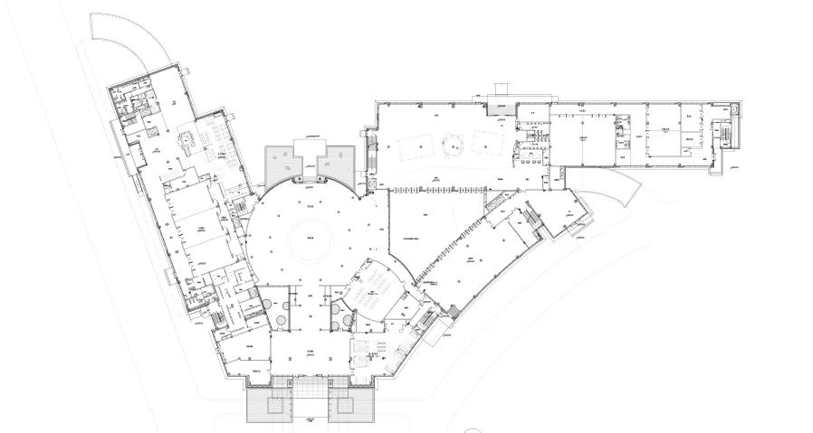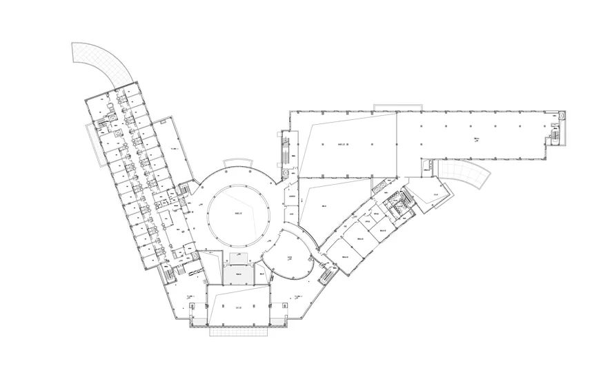 整个接待中心除了基本的接待功能外,还包含了酒店,办公,会议等功能,在平面的设计中各个功能块采用了明确分区的同时又呈现出灵活多变的组织方式。