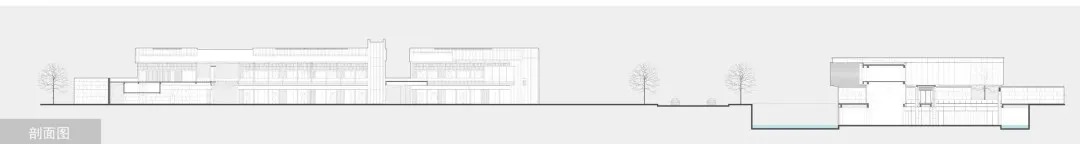 建筑两层体量,通过二层体量悬挑,强调水平的延展和体块的漂浮感。结合千纸鹤造型折板在体量下进行托衬,以达到四两拨千斤之效,如舞者的姿态,刚柔相济。