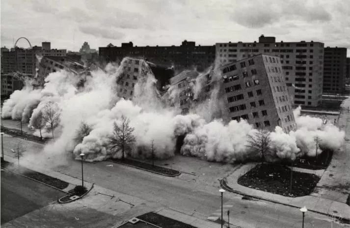 后现代主义建筑思潮推动者的查尔斯·詹克斯,在1977年出版《后现代建筑语言》(The Language of Post-Modern Architecture)书中写道:“1972年7月15日下午3时32分,现代主义建筑在美国密苏里州圣路易斯城死去”,借(Pruitt-Igoe)普鲁伊特—艾格大厦的失败与爆破宣告一个时代的终结。