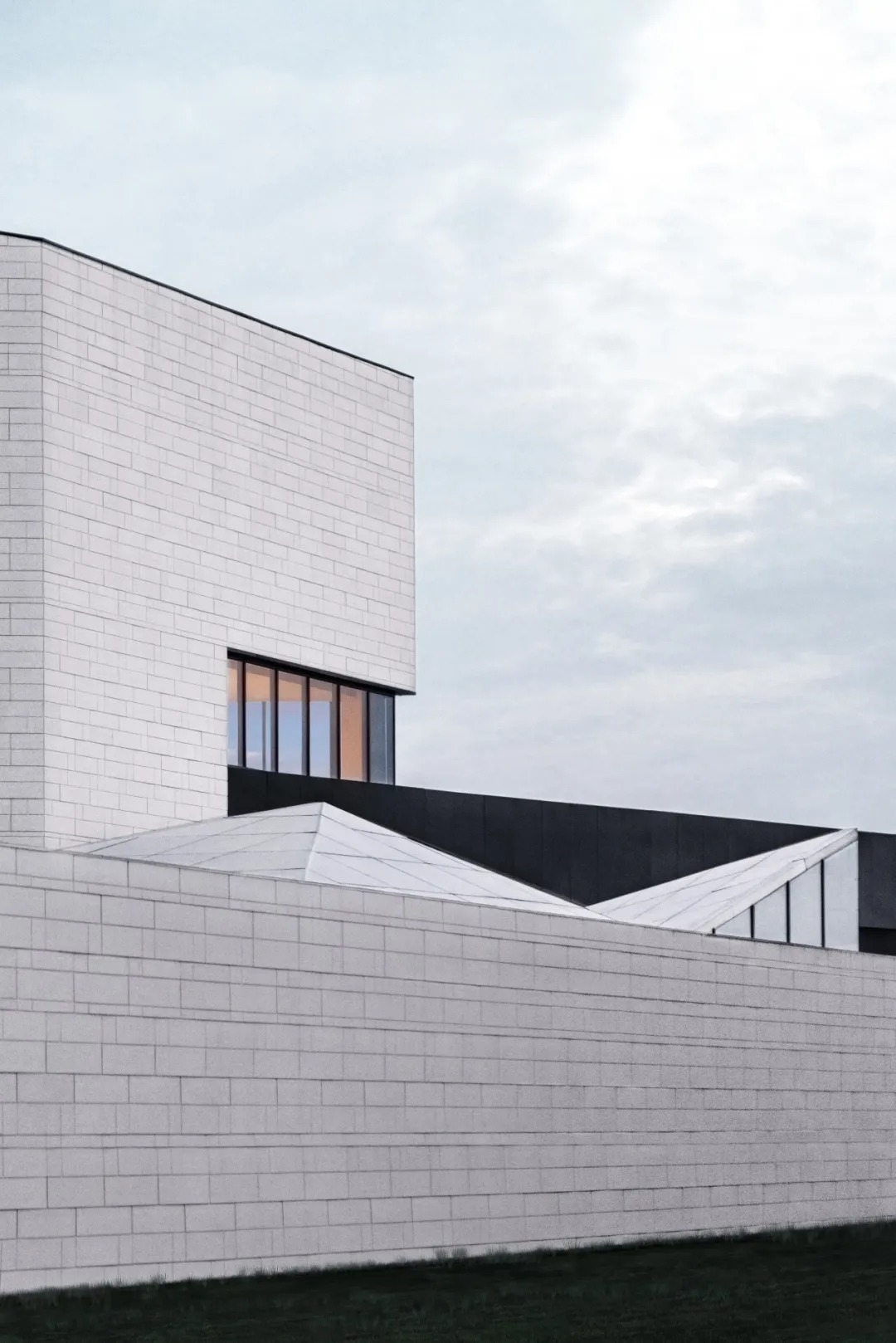 将现代主义可归纳为某种类型或从中结晶出某种语汇,融入雕塑化的形体,不逃避中心透视法则也不受限于此,忠于简练的几何也不沉溺于此,致敬经典但不跟随。